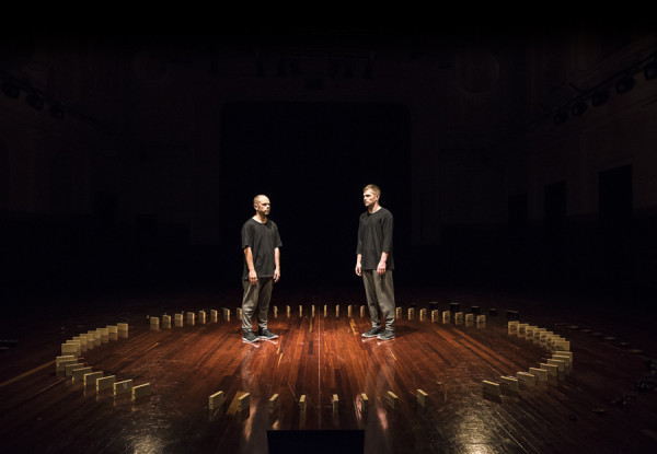 Um recital fascinante composto por corpos e programação eletrónica: num círculo constituído por 64 instrumentos robóticos de percussão, os australianos Antony Hamilton e Alisdair Macindoe executam movimentos sincronizados, simétricos, minimais e coordenados.