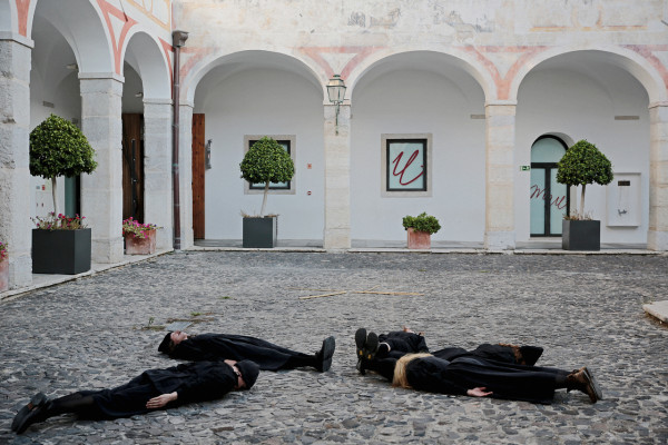 Neste último dia do workshop dirigido por CLAUDIA CASTELLUCCI, é feita uma apresentação pública da coreografia, com duração de 30 minutos, em três sessões únicas no claustro do Convento das Bernardas / Museu da Marioneta, em Lisboa.