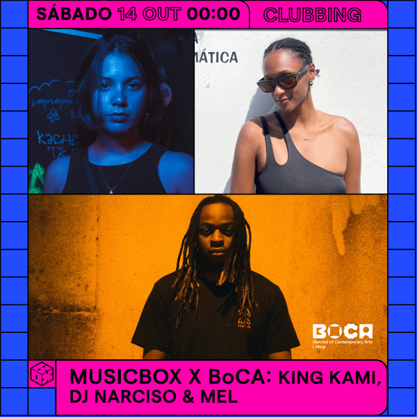 No sábado, 14 de outubro, a BoCA festeja o fecho da sua programação no Musicbox. King Kami, Dj Narciso e Mel são os DJs escolhidos para encerrar a 4.ª edição desta celebração da arte, com uma identidade de programação que se sustenta nas travessias, entre territórios artísticos, entre linguagens e geografias, entre tempos e espaços.