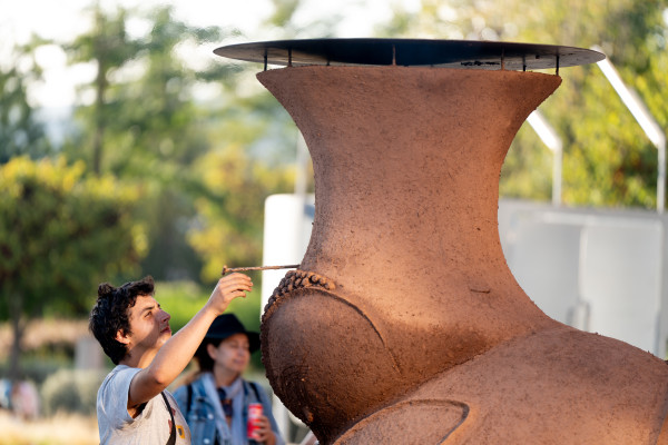 A convite da BoCA, Gabriel Chaile cria uma nova instalação para a Praça do Carvão do MAAT – um tributo a Alcindo Monteiro, jovem português, nascido em Cabo Verde, brutalmente assassinado em 1995, num crime que expôs, e continua a expor, o racismo estrutural que encontra espaço e legitimação no país. Em torno do forno-retrato de Alcindo, prevê-se uma série de ativações coletivas, em quatro datas, com comida, debates, música e exibição de filmes. Compondo minuciosamente este momento do encontro – de lugares, tempos e identidades –, repleto de calor e pertença, Chaile coloca a sua escultura “Auto-Retrato” frente a frente com o forno “Alcindo Monteiro”, num esforço de implicar o seu corpo nesta troca de olhares e histórias, com honestidade e empatia. “E se o autobiográfico não for mais do que a história dos outros a atravessar-nos?”, pergunta Chaile.