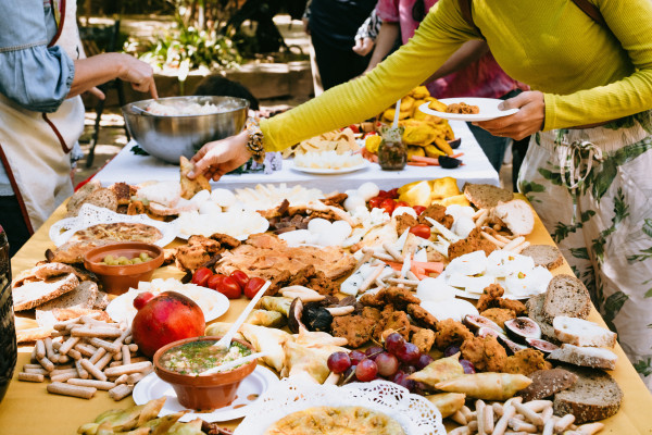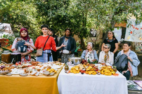 Refeição: empanadas argentinas e pratos de diferentes comunidades do bairro de Lavapiés