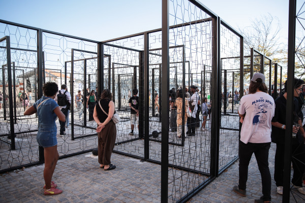 Cabeças que jazem longe dos seus corpos no fundo de um mar. Concebida como um labirinto habitável de grande escala, a instalação é composta por gradeamentos com padrões distintos, numa alusão direta à arquitetura urbana e à chamada “geometria do medo”. Ao criar um labirinto que convida o público a circular e habitar, a instalação de Kiluanji Kia Henda propõe um jogo poético: os visitantes tornam-se estrangeiros ao percorrer um território desconhecido, embarcando numa jornada errante onde nem sempre o caminho escolhido levará o seu corpo ao destino ansiado, à libertação que representa o lado de lá da travessia.