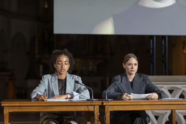Concebido como uma vigília performativa, a cena transforma-se num tribunal expandido, onde se reconstrói o julgamento a partir de centenas de horas de testemunhos, provas, entrevistas, análises forenses, registos visuais, colagens e textos académicos. A encenação de Milo Rau, em colaboração com a dramaturga e ativista Servane Dècle, não procura reconstituir os factos, mas criar uma arquitetura de escuta, memória e resistência.