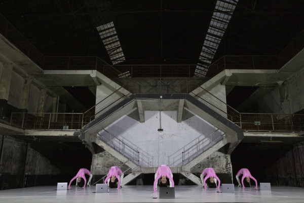 A performance “SOLAS” aborda a sobre-exposição do corpo feminino na era digital. Cinco intérpretes, cinco computadores e uma plataforma de streaming partilham o mesmo espaço — físico e virtual — num dispositivo coreográfico onde um grupo de performers mulheres se contemplam a si mesmas enquanto são observadas, numa encenação que confronta o olhar, a repetição e a vigilância.