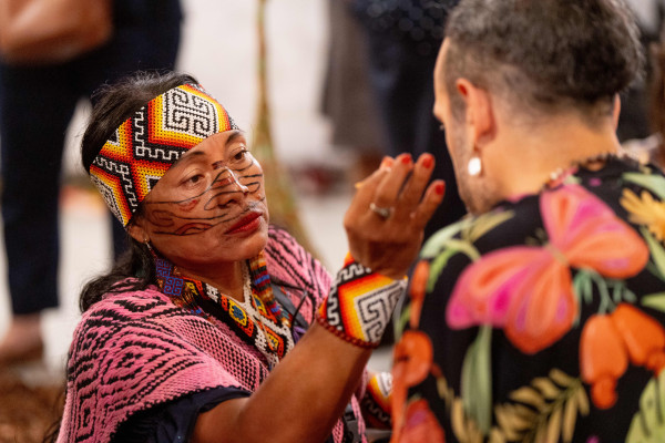 No workshop “Cantos na Cosmovisão Huni Kuin”, o coletivo Huni Kuin propõe uma experiência imersiva que se relaciona com a cultura musical do seu povo, pensando a voz e a melodia enquanto veículos e instrumentos para agir no mundo, constituir corpos e viver bem.