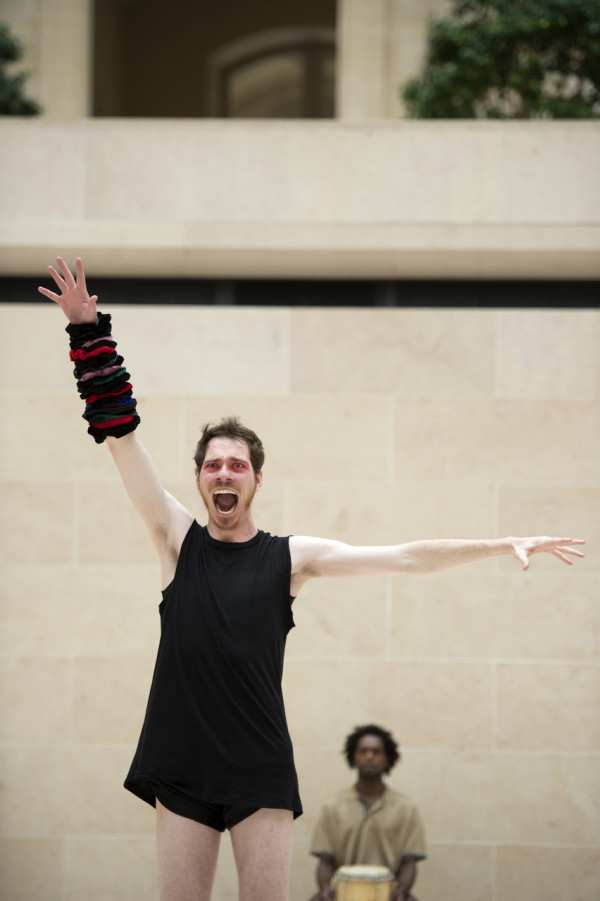 The Louvre hosted the first incarnation of Volmir Cordeiro’s creation “Rua”[Street] in 2016, the Brazilian dancer and choreographer’s new exploration of the poetic capabilities of a body in museum space, in major tension with Bertolt Brecht’s poetry on the war (“The ABC of war” of 1954). The body remains the same, it being immense, apparently disconnected, potent yet fragile, eloquent in the expression of words and in the relation it creates with the landscape both urban and human that interlinks with a dance in permanent metamorphosis in-between states coupled with violence, pain, celebration, resistance or vulgarity.