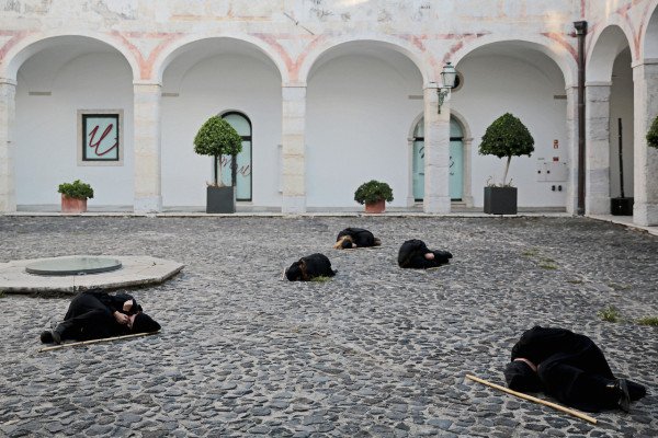 The seminar “The Wave Treatment” is built according to a rhythmic principle that considers the different moments of the day. The rhythm is in fact the basis of this dance and opens to listening to the negative and missing part: the silence and the memory of the sound that is prolonged in time and that meets new strokes during its dispersion. We treat the sound of bells and the presence of dancers caught between shots and breaks. A dance based on the sound of bells and implemented with a stick. The sound of the bells is prolonged in a duration that adds up many chimes and arranges to be refracted and expanded by the currents. The spectral consistency of the sound founds a capacity for listening that brings together presence and memory (a presence that does not pass). The sequence of beats that continue to float in the air generates random coincidences and rhythms, different and co-present. Dancers treat this as a teaching.