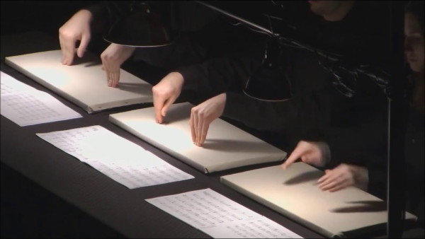 Movement intuition plays a central role in his work: De Mey developed a concept of “Gesture music” for which he developed a vocabulary and a notation system (“Musique de Tables”, “Silence must be !,” Light Music “, …), presented all over the world. The postulate of his musical and film writing consists of” rejecting the concept of rhythm as a simple combination of durations within a temporal grid, but rather conceiving it as a generating system of falls and new developments “.