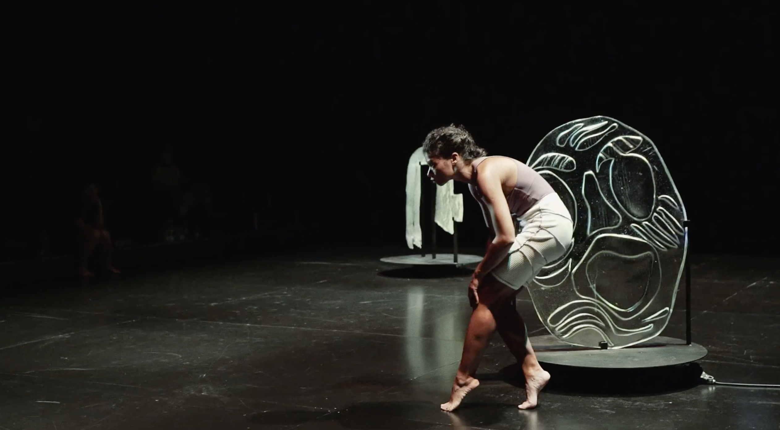 The first in performance format, in a co-production with the CCB, with the glass and iron sculptures being modulated by the poetic writing of António Poppe (poet and visual artist) and his vocalization on stage, to be used as a body extension or prosthesis by Vânia Doutel Vaz (performer) and with the visceral sound accompaniment of João Polido (musician).
