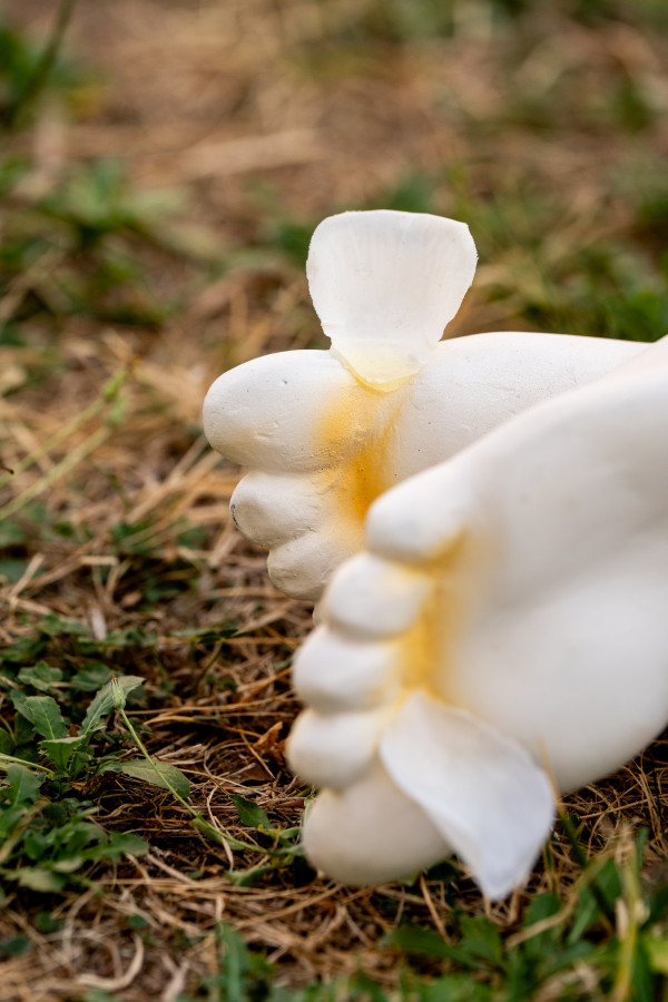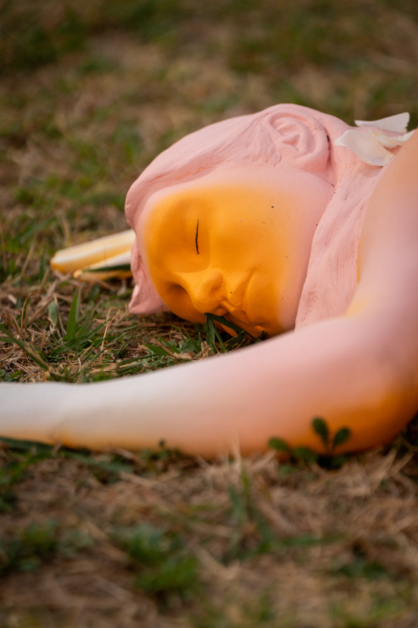 Proganó’s installation combines sculpture and sound to explore the relationship between the body and listening. Through three figurative sculptures arranged in the green space, the public is invited to perceive sounds coming from unusual places, expanding their listening dimension from the ground.