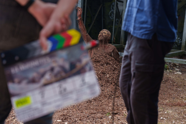 La BoCA – Bienal de Artes Contemporáneas nos invitó a realizar un cortometraje para esta edición de la bienal, en 2025, que se divide entre Lisboa y Madrid. Dos países vecinos que, por fin, se han atrevido a romper fronteras e idiosincrasias. Madrid fue la ciudad de los primeros viajes en solitario de João Pedro, cuando aún era adolescente. Lisboa es la ciudad que hemos filmado desde nuestro centro, el barrio de Alvalade, hasta que conseguimos escapar de ella, derivas que nos llevaron a Trás-os-Montes y, aún más lejos, a Macao y Asia, donde João Rui pasó sus años de formación. Pero la mitología de Lisboa, la mitología portuguesa, sigue persiguiéndonos. Una de las cuestiones centrales de nuestro trabajo ha sido la forma en que esas mitologías viven en nosotros y en nuestro presente colectivo. John Romão, director artístico de BoCA, nos recordó la «obsesión» de João Pedro por la Ermida de San Antonio de la Florida, de la que tantas veces le hablamos (John fue actor en la película Morrer Como Um Homem). Y recordamos que la última vez que la visitamos, en 2023, cuando se estrenó comercialmente en España la última película de João Pedro, Fogo-fátuo, había sido restaurada. Los sombríos colores de Goya explotaban en todo su esplendor.