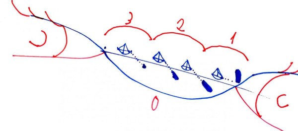 “0” é uma ação em 3 tempos: (1) margem; (2) rio; (3) margem. Consta do transporte de um bloco oval de gelo, que atravessa o Rio Tejo pela via marítima desde a margem de Lisboa até à margem de Almada. No seu interior, está suspensa uma escultura até que o fenómeno do degelo suceda.