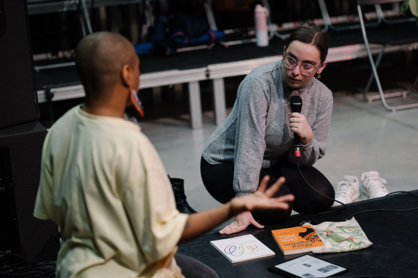 Sessão de mediação dinamizada por Sara Franqueira, coordenadora dos programas BoCA Sub21 e Mutantes-Entre o Teatro e o Museu, sobre as artes contemporâneas, dirigida a jovens estudantes da Moita, que visa contribuir com conhecimentos e para o empoderamento para as artes.