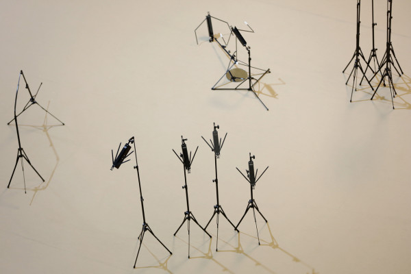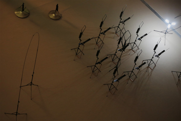 Em Cattivo – da boca para fora, as estantes são objetos de pedestal, compostos por partes diversas com dimensões e formas variadas, ligadas entre si através de rótulas, como as marionetas que, por sua vez, são feitas à semelhança do esqueleto animal ou humano. As estantes de partitura são corpos desdobráveis com o propósito de servir de apoio à partitura dos músicos, que tocam ou cantam. A sua forma e função são aparentemente indissociáveis, a não ser quando Marlene lhes atribui novos significados e usos, desde logo extraindo-lhes qualidades antropomórficas. Em Cattivo, as estantes são exploradas até ao limite das suas propriedades expressivas, a capacidade para encarnarem estados emocionais e tomarem decisões, manipulando-se a si mesmas e a outros objetos, constituindo-se como equipa numa comunidade sinfónica, com diferentes instrumentos, ritmos, linhas melódicas…
