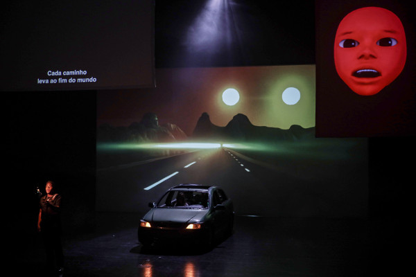 A convite da BoCA, Polska cria a sua primeira peça de teatro, “O Carro Falante / The Talking Car”, com um elenco internacional, protagonizado por Albano Jerónimo, Iris Cayatte, Vera Mantero e Bartosz Bielenia. Em cena, vemos um grupo de pessoas a tentar encontrar uma saída de um carro em alta velocidade. São acompanhados por uma marioneta digital de grande escala, que canta e observa as suas lutas com terna curiosidade. As personagens dentro do carro, a caminho de um destino em constante mudança, exploram uma diversidade de papéis, géneros e estados emocionais. Música atmosférica e repetitiva e animações hipnóticas fazem crescer a melancolia deste conto imersivo: um conto sobre o papel de alguém preso no complexo sistema que combina agentes humanos e não-humanos, e infraestruturas sociotecnológicas.
