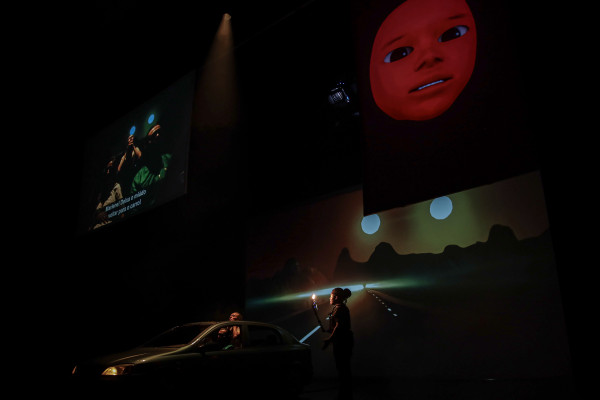 A convite da BoCA, Polska cria a sua primeira peça de teatro, “O Carro Falante / The Talking Car”, com um elenco internacional, protagonizado por Albano Jerónimo, Iris Cayatte, Vera Mantero e Bartosz Bielenia. Em cena, vemos um grupo de pessoas a tentar encontrar uma saída de um carro em alta velocidade. São acompanhados por uma marioneta digital de grande escala, que canta e observa as suas lutas com terna curiosidade. As personagens dentro do carro, a caminho de um destino em constante mudança, exploram uma diversidade de papéis, géneros e estados emocionais. Música atmosférica e repetitiva e animações hipnóticas fazem crescer a melancolia deste conto imersivo: um conto sobre o papel de alguém preso no complexo sistema que combina agentes humanos e não-humanos, e infraestruturas sociotecnológicas.