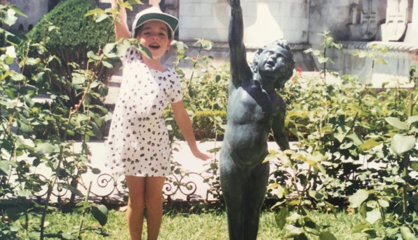 “O corpo no espaço público. Em 1997, ou 96 ou 98, o meu pai carregava no botão da máquina fotográfica descartável que tínhamos comprado nessa manhã, para registar a viagem familiar que fazíamos a Coimbra, ao Portugal dos Pequenitos. Como todas as fotografias, há um antes e um depois. Há o momento em que nos preparamos (porque esta fotografia não foi desprevenida), e o momento em que desmobilizamos a pose. (Podemos sair de uma fotografia transformados?) Nesta fotografia em particular, lembro-me com especial rigor do antes e do depois, porque o disparo coincidiu também com uma inevitável mudança em mim.