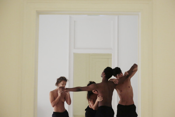 Através do desaceleramento, da inibição do sentido da visão e de uma aproximação cinética e somática ao corpo e seu movimento, André Uerba e performers exploram diferentes formas de se conhecerem e se sentirem. Corpos que se encontram, coordenam e comunicam de forma não verbal – abrindo um espaço que se entende político – na urgência de encontrarmos lugares de cuidar o corpo, de explorarmos zonas de escuta não orientadas pela mente. André Uerba propõe um regressar ao corpo, um regressar à pulsação da natureza.