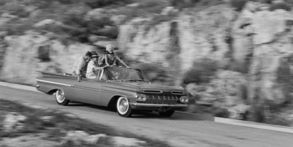 “Une vague joyeuse” é um projeto de Luís Lázaro Matos cujo título advém da última cena do filme “Testamento de Orfeu” (1960) de Jean Cocteau, onde um carro descapotável percorre as curvas de uma estrada enquanto os seus passageiros gritam de alegria, indiferentes a dois polícias estacionados na berma.